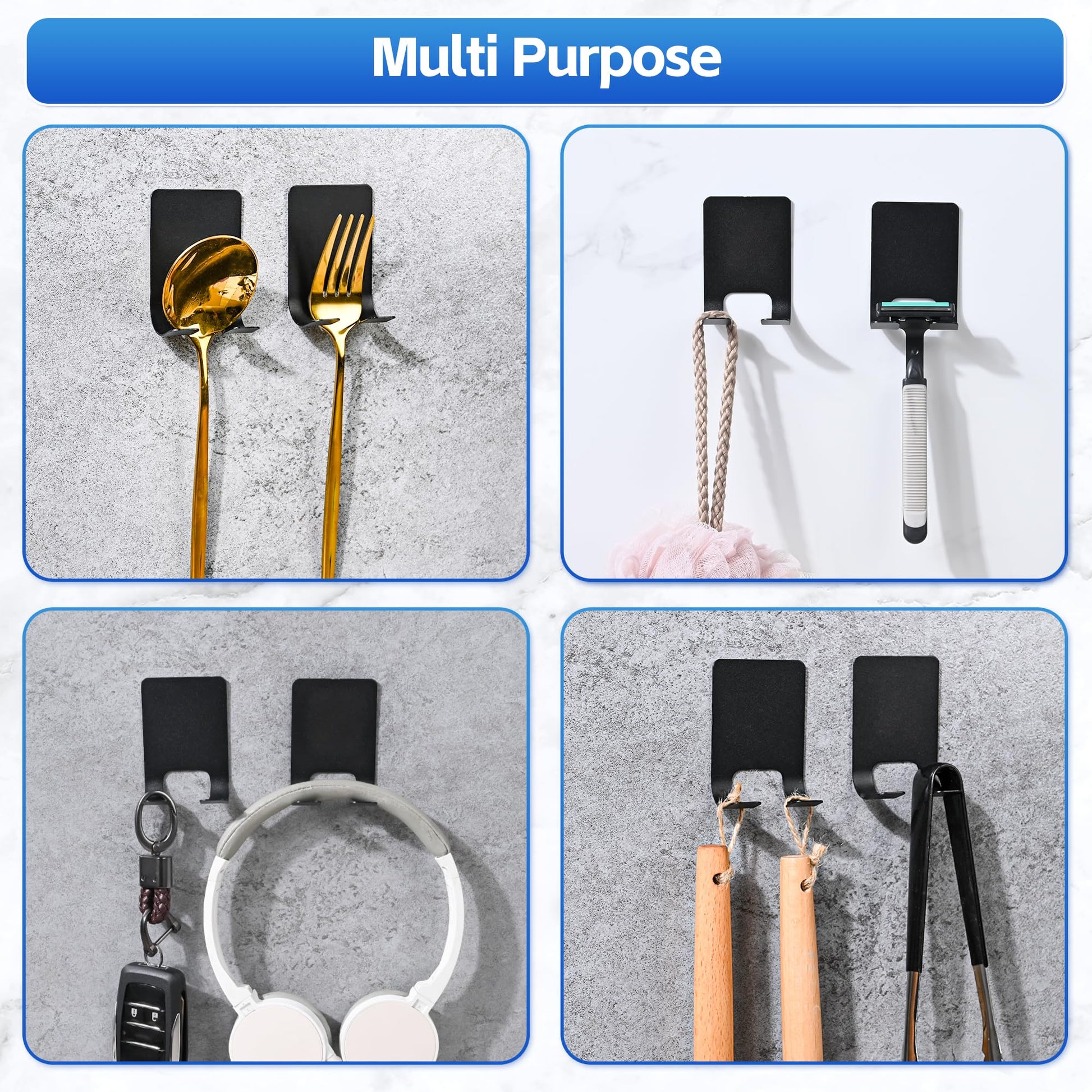 • SELF ADHESIVE INSTALLATION: Designed with a peel and stick backing, these self adhesive hooks attach without drilling or tools and support up to 1 kg after proper surface application.